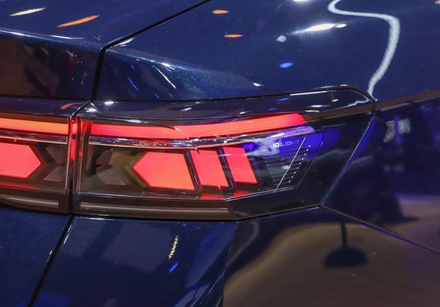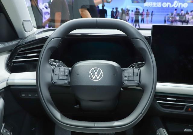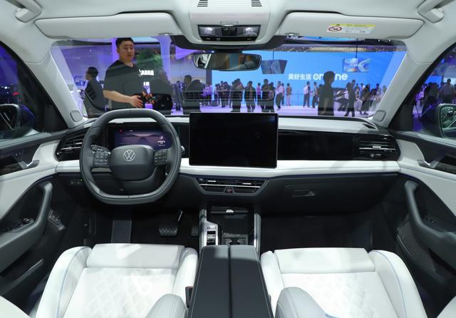 而车尾部分,尾灯当然也是和燃油版本保持一致,后保险杠部分加入了贯穿式的蓝色装饰条和车头形成对应,让整车的风格形成统一。在内饰部分,当然也基本延续了燃油版本的设计,并没有像上汽大众兄弟那样进行重做,主要的不同是采用了平底两个方向盘,这是大众新能源家族车型的标配,其他就是悬浮式大屏,向驾驶侧偏转的中控台面,液晶仪表盘,主驾驶侧娱乐屏Hud抬头显示等都不会缺席,怀挡机构也得到了标配。